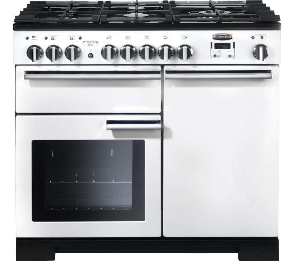 Buy RANGEMASTER Professional Deluxe 100 Dual Fuel Range Cooker White & Chrome Free Delivery